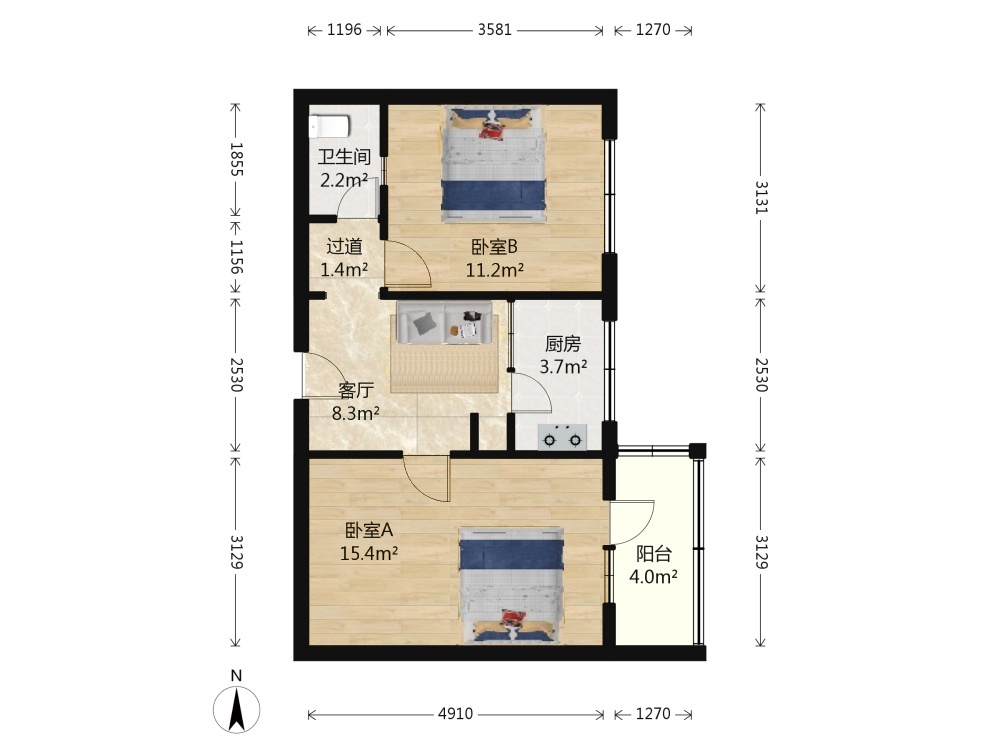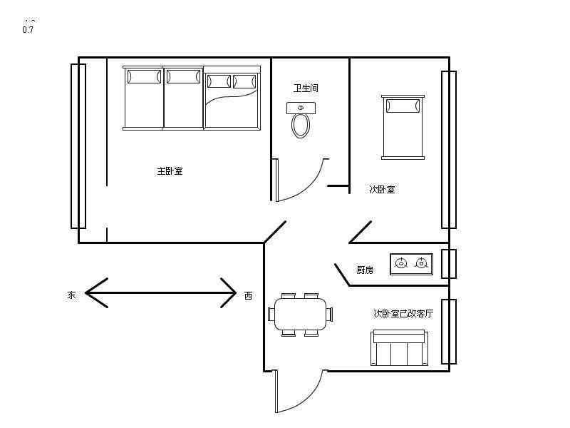 此房为双东向居室,主卧室朝东向带阳台,次卧朝东向带阳台,打开屋门能形成良好的自然通风,厨房带窗户,一进门就是客厅,房子户型方正。