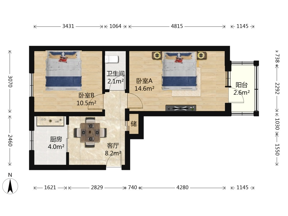 房屋是个东西通透的两居室,主卧室朝东带阳台,次卧室超西,房屋是明厨暗卫的户型。