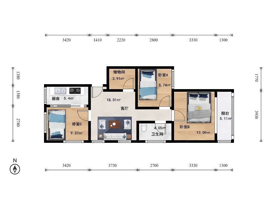 此房为东西南向3室2厅1卫,建筑面积为86.82平米,此房为东西南全明格局三居面积86.82。户型方正好利用