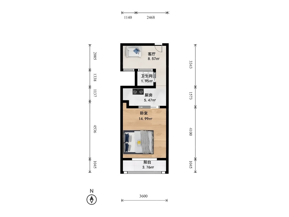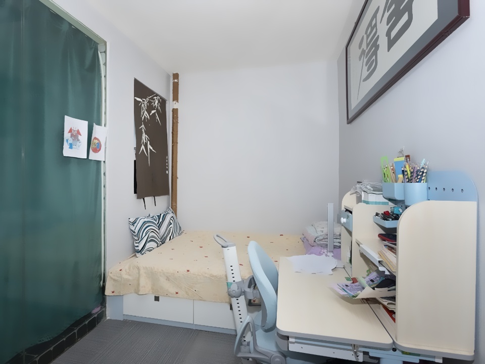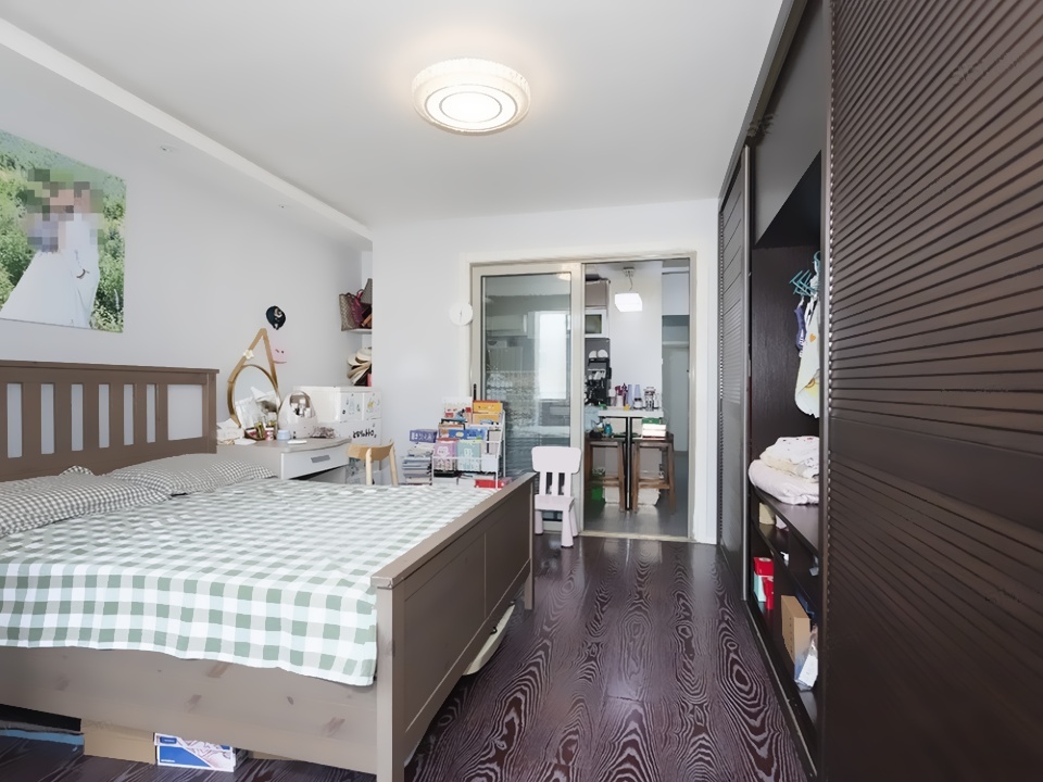 此房为南向1室1厅1卫,建筑面积为45.53平米,房子是 6年建成,混合结构,客厅业主改成孩子的一间卧室做榻榻米了,中间是卫生间和厨房,再往南是一间主卧室带大阳台。