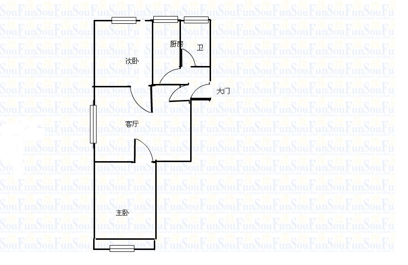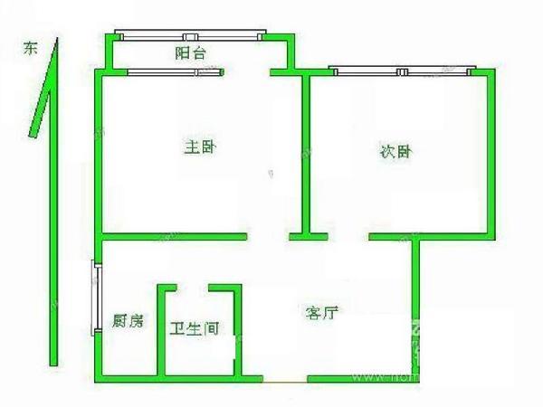 此房为南北向2室1厅1厨1卫1阳,建筑面积为68.4平米,房子是主卧室和客厅朝南向,厨房和次卧室朝北向,户型方正