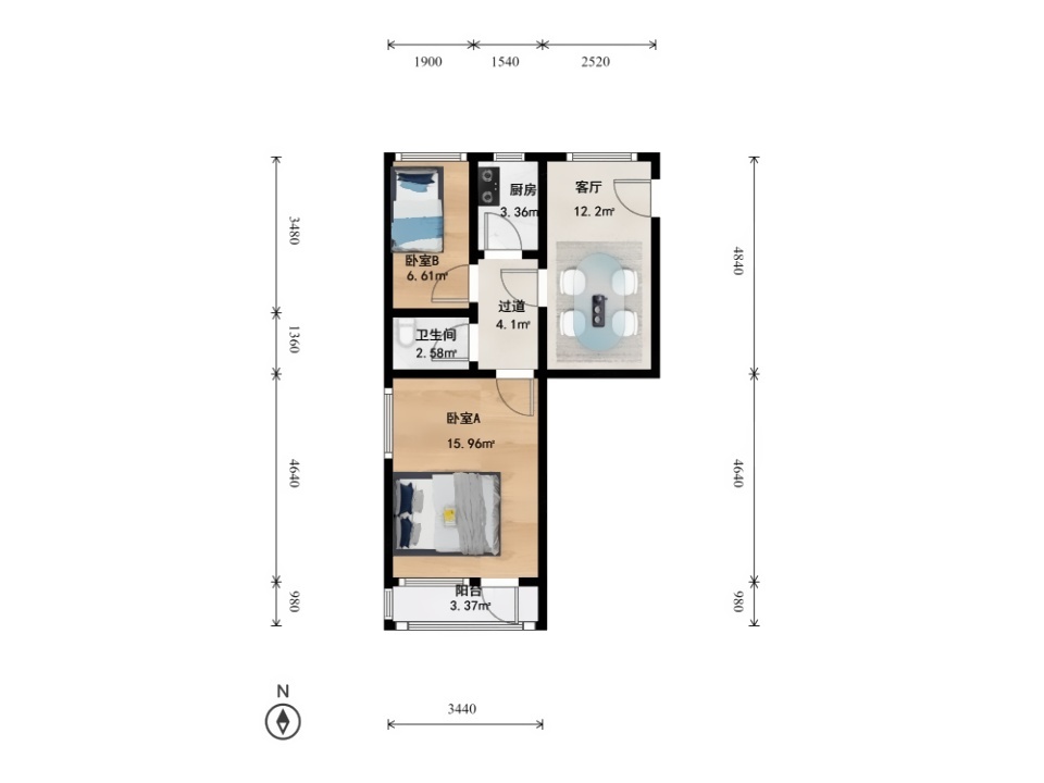 户型:2室1厅1厨1卫1阳台