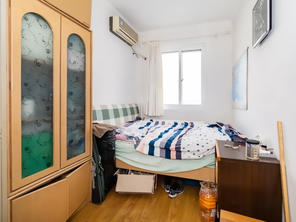 房子是南北通透的两居室,主卧室朝南,小卧室朝北,朝南有一个阳台,