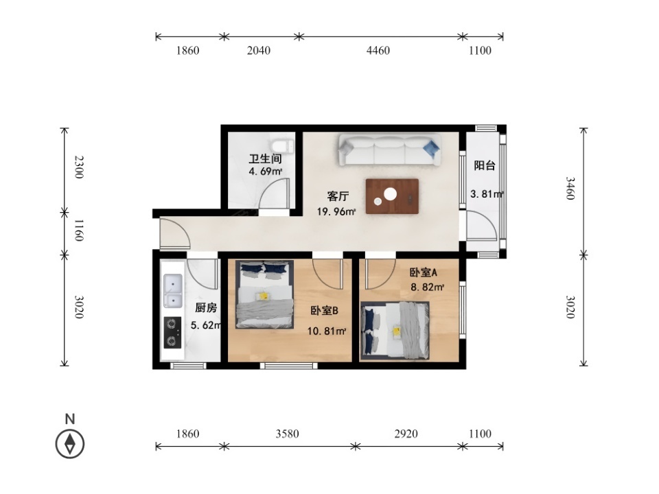此房为东南向两居室,建筑面积71.39平米,主卧客厅朝东,次卧朝南,满五年,业主诚意出售